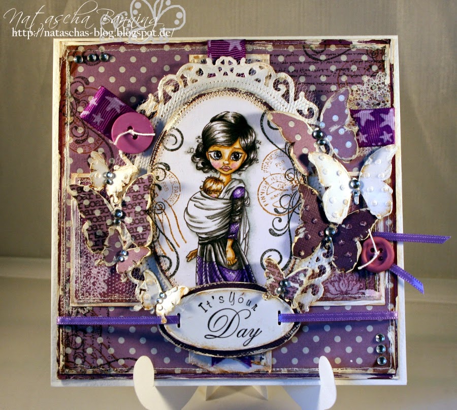 Meine Freundin Danny ist vor kurzem Mama geworden und allene aus diesem Anlass habe ich diesen süßen Digi von Saturated Canary gekauft und verbastelt. Ich finde das Motiv total passend und so schön filigran. Außerdem habe ich das tolle Vintage Clear Stamp Set von Lidl eingeweiht und z.B. die Box komplet damit bestempelt.